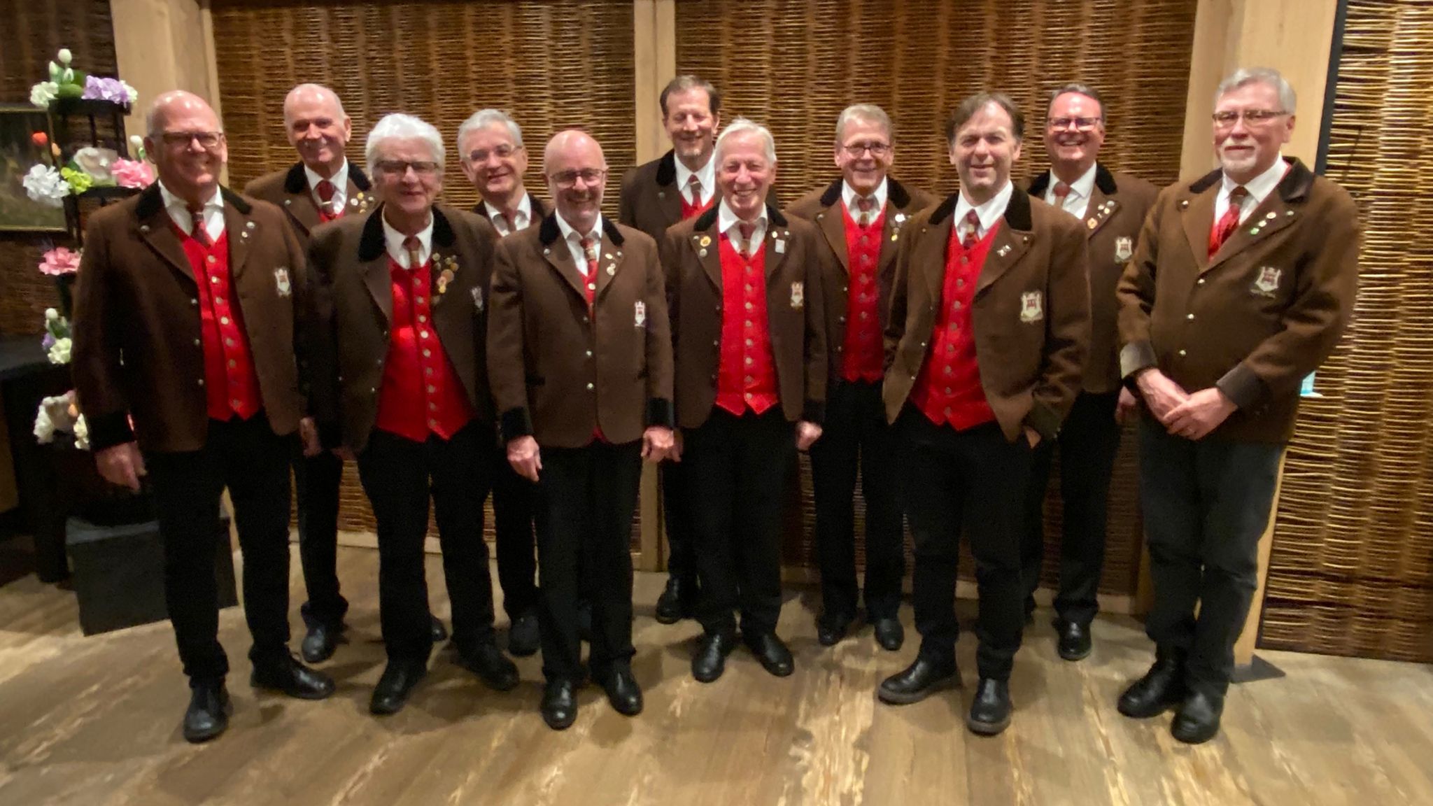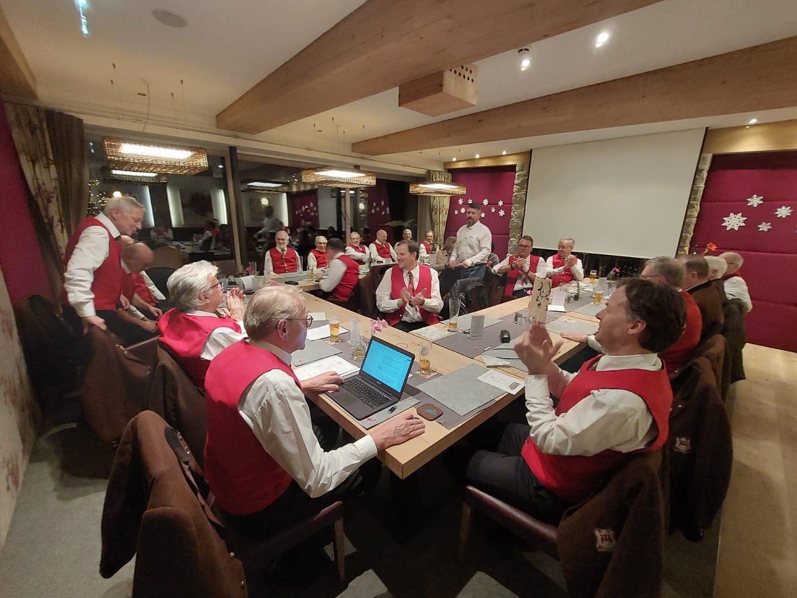 Nach dem gemeinsamen Abendessen folgten die Berichte und Ehrung, während die vollzählig erschienenen Sänger interessiert den Ausführungen lauschten.