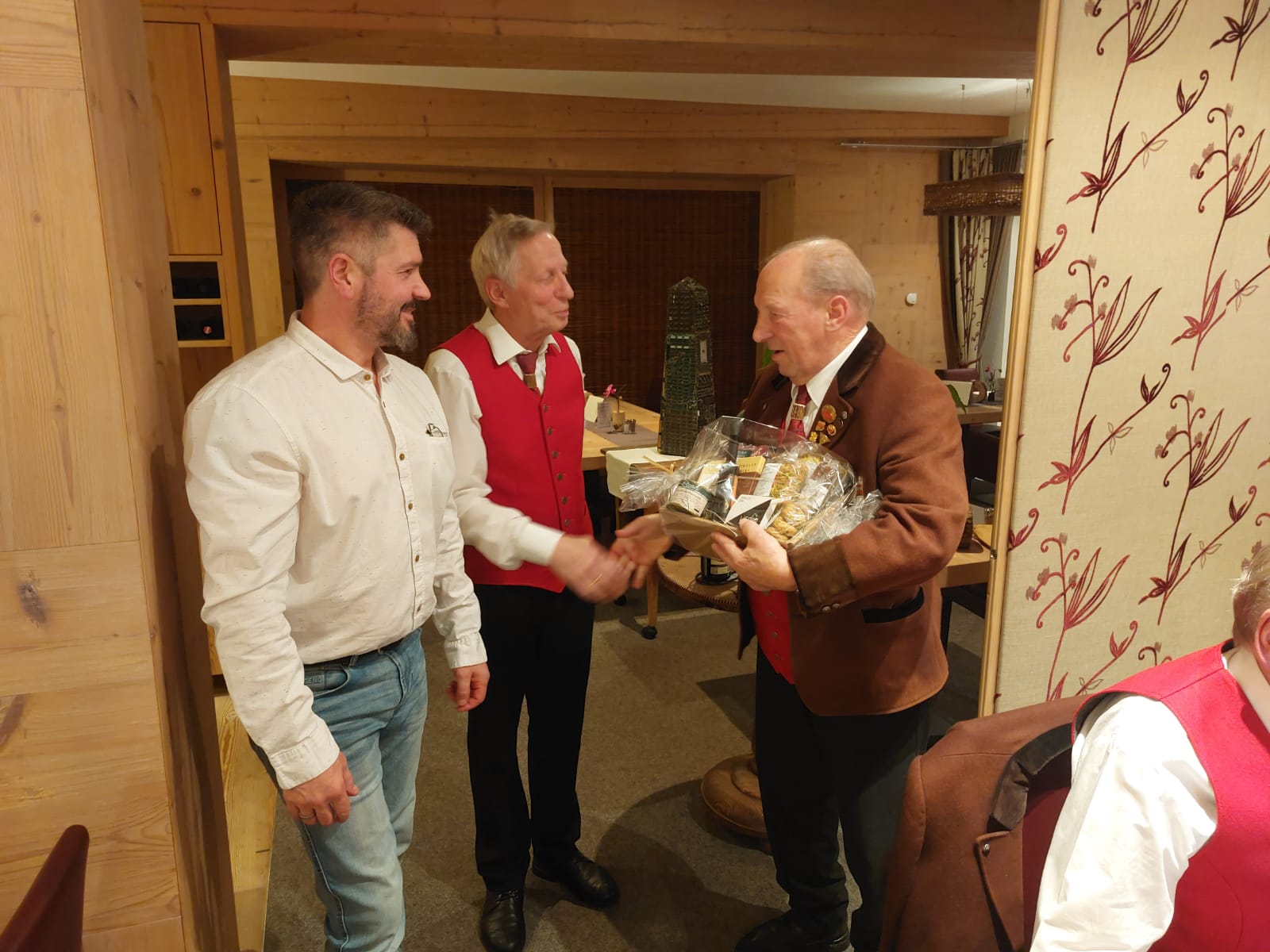 Emmi Lutz erhielt für 70-jährige Mitgliedschaft beim MGV Reutte einen Geschenkskorb von Obmann Thomas Sturm und Vizebgm. Markus Immler überreicht.
